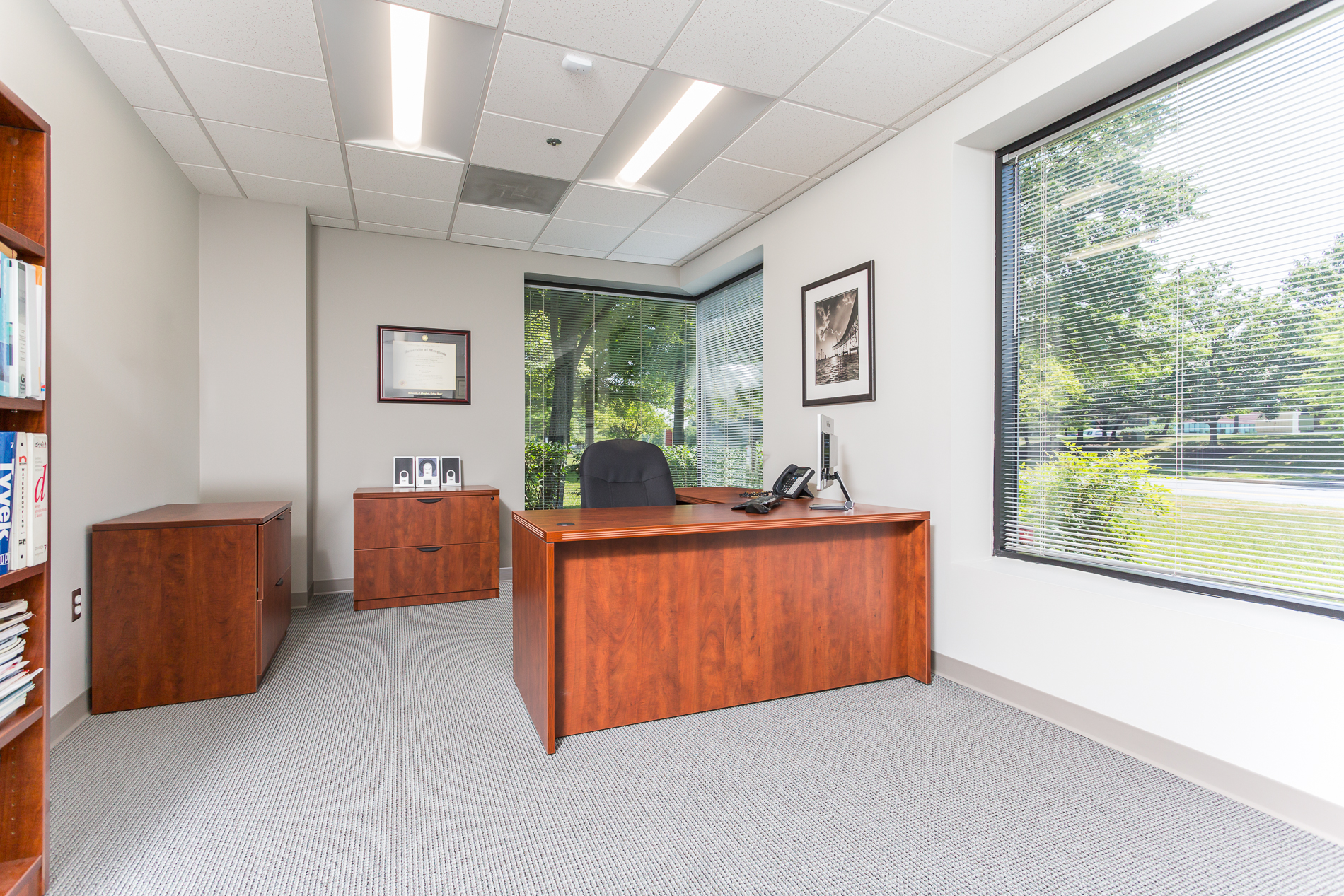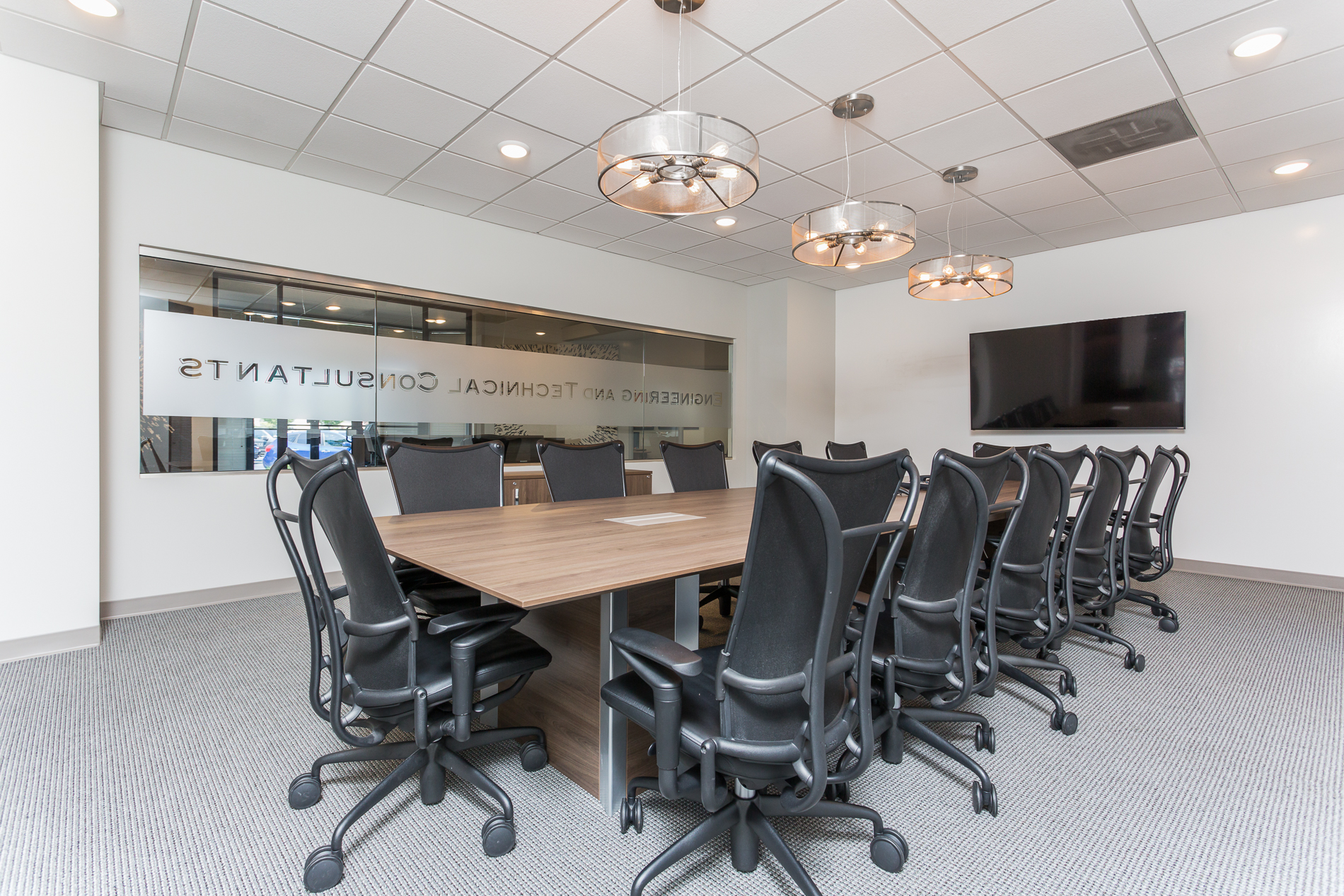Background: Engineering and Technical Consultants has an engineering office in Columbia, MD with a staff of 12 people. Renovation space required lobby, conference room, kitchen, bathrooms, manager’s and inspector’s offices, library, print room, storage and lounge area.
