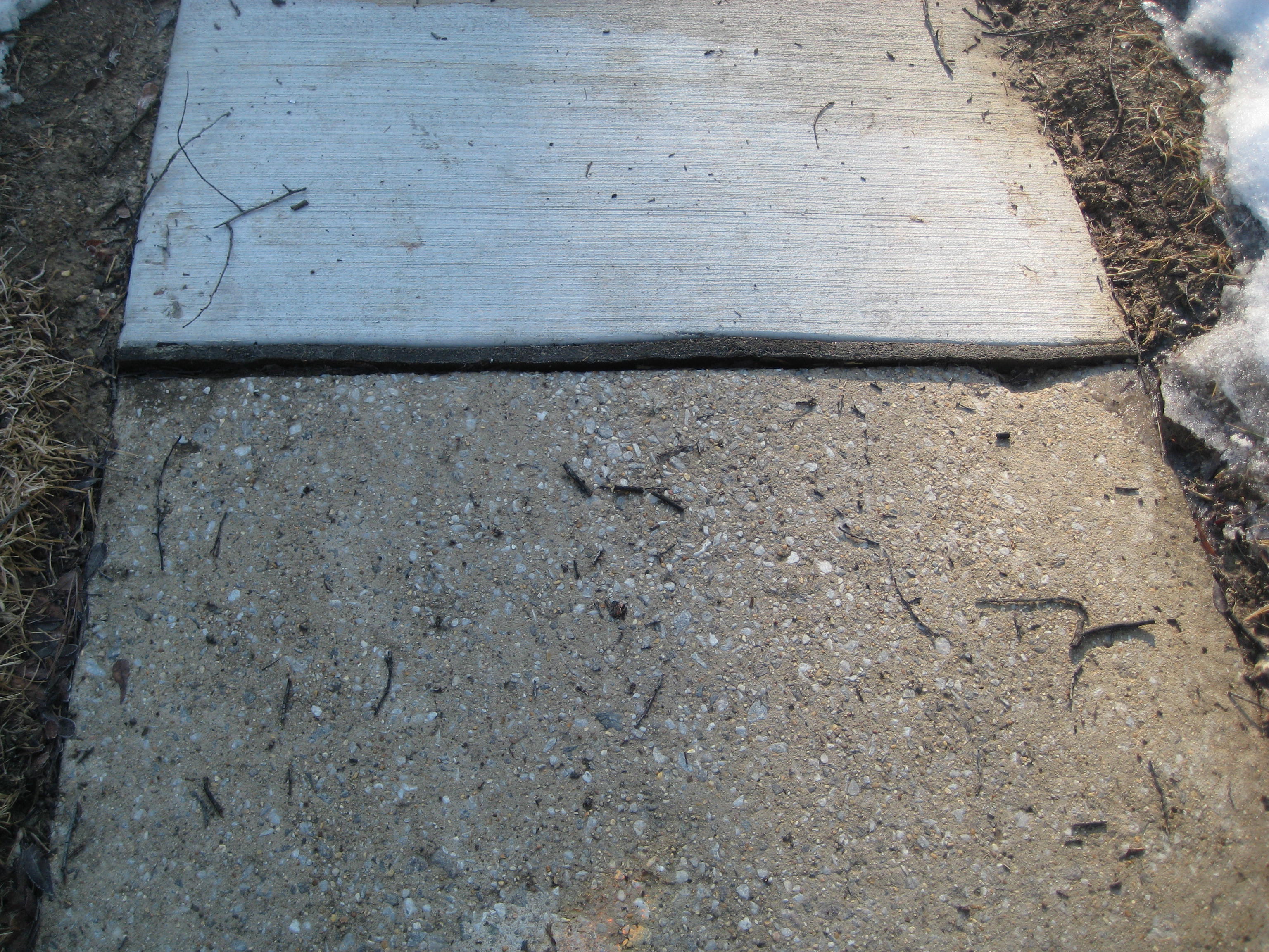 (raised) sections of concrete sidewalk due to the cold weather which present a potential trip hazard. As a general rule, a ½”or more difference in the level of the walking surface can be a potential trip hazard. We have also seen damaged concrete sections from freeze/thaw action. It seems that the winter has been tough on concrete this year and an inspection of your property is advisable so that timely repairs can be made.
