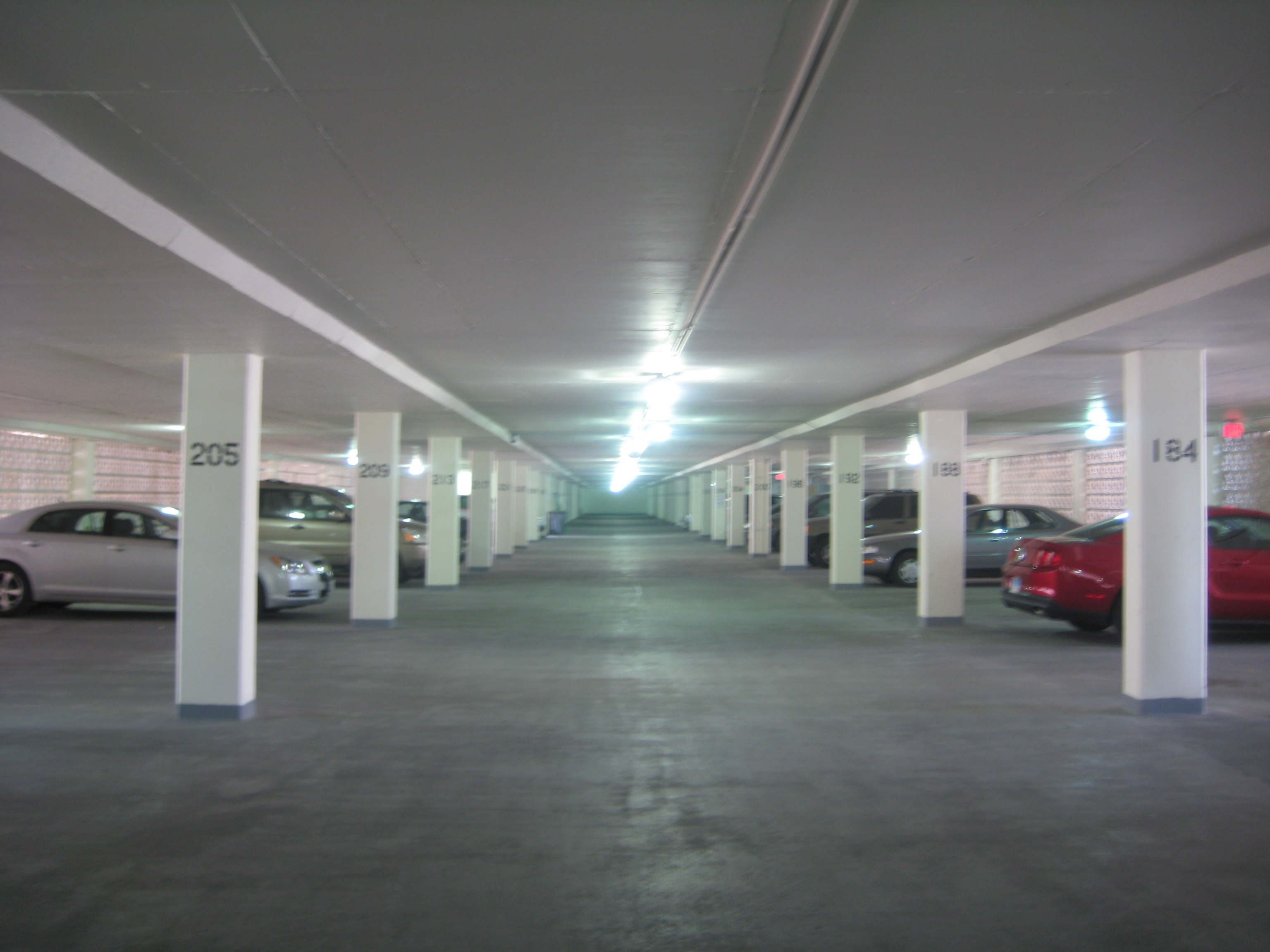 Parking garage rehabilitation projects can take a while to complete, but the payoff can be huge especially when the aesthetics are improved as shown. This recently completed garage is a prime example of a dark, unsafe looking, cavern-like parking area that was transformed into a bright space. New lighting, painted columns and ceilings, and a protective waterproof driving surface have transformed the aesthetics of this garage.